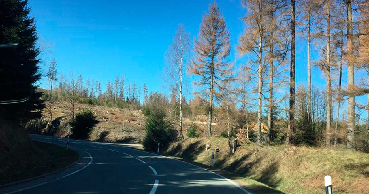 Bild 1 Der Weg nach Königshütte zeigt die beiden Seiten unseres Waldes, links ok, rechts tot.
