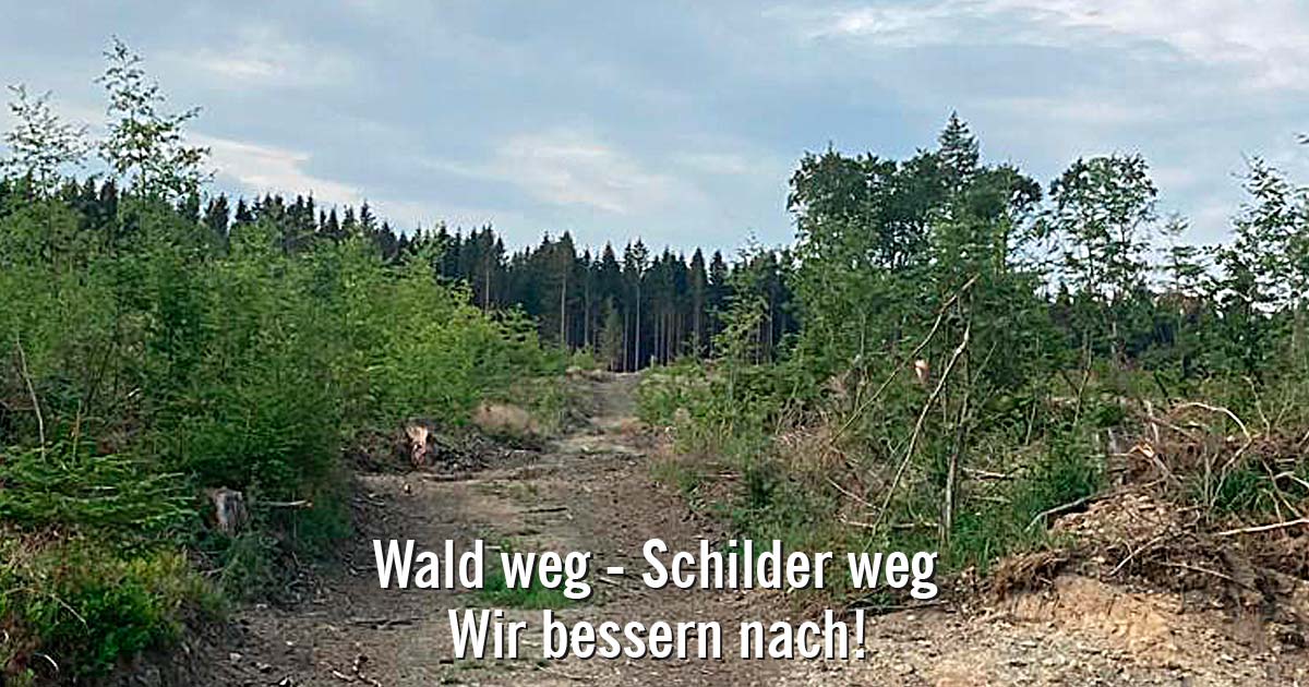 Nachdem ein Großteil der Bäume hier rund um das Tal der Kalten Bode gefällt werden musste, ist mir bei einer Radtour aufgefallen: Nicht nur der Wald ist weg, auch die Bäume woran vorher die Schilder, welche den Weg nach Mandelholz gewiesen haben.
